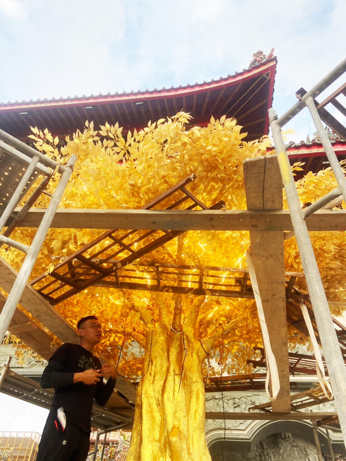 國內財神祖廟的雲林縣北港武德宮,2024年新春翰億與武德宮合作一顆高達4.5公尺的「財神寶樹」藝術工程,樹身金光閃閃,不僅金枝玉葉,土方全是金銀財寶,全使用FRP玻璃纖維材質製作出許多大小銅錢及元寶,其中樹身及元寶表面按上銅箔顯得更加貴氣,吸引大批遊客爭相和黃金發財樹合照,為自己添添財氣,夜間搭配LED燈光效果,金光竄天,宛若財神下凡,為新的一年增添不少財運喜氣。